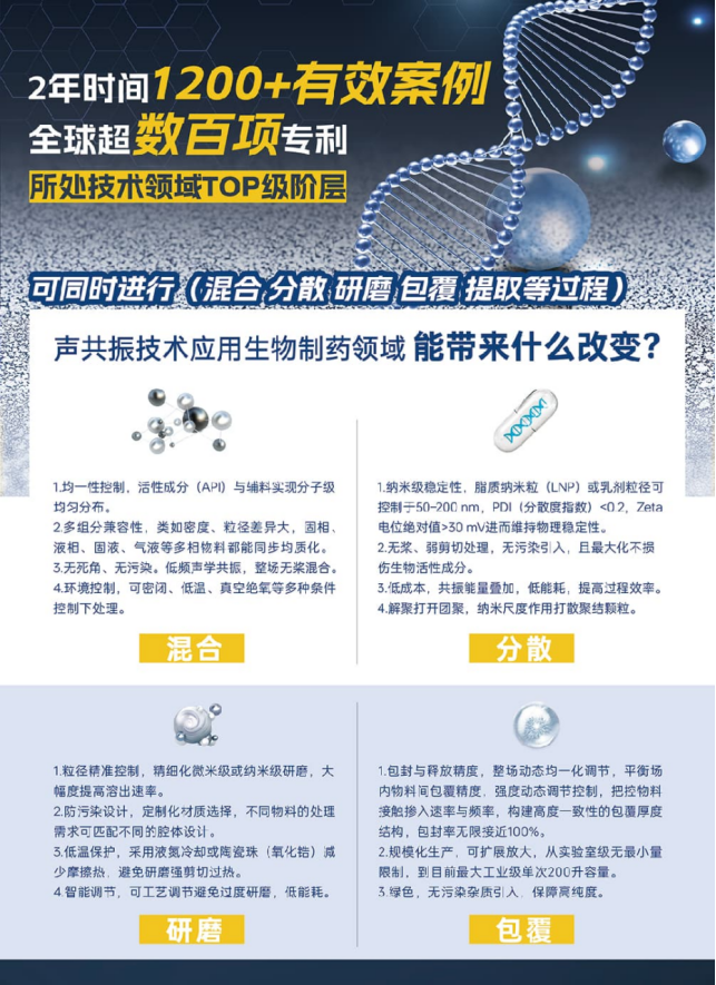 声共振技术提升生物制药领域数十倍至百倍效率